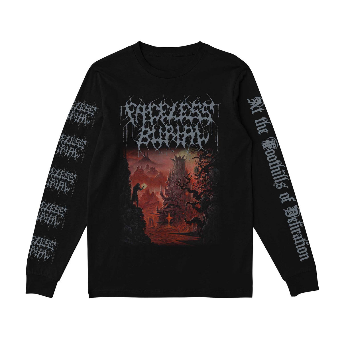 Official long sleeve t-shirt to commemorate the release of the new album from Faceless Burial. Artwork by Dan Seagrave. Printed on black Gildan long sleeve t-shirts by Inferno Screen Printing.